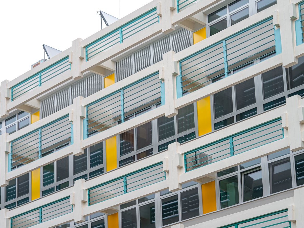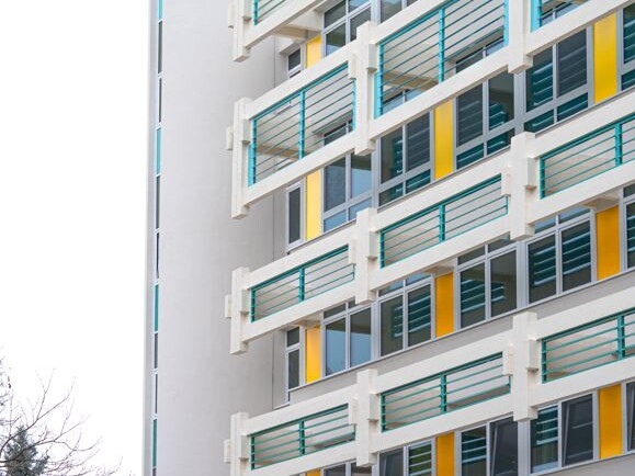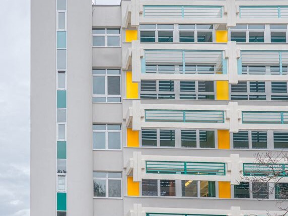 A vasbeton mellvédek és erkély lemezek felületének felújítása, korrózió védelme, ahol a betontakarás sérült, majd lefestése.