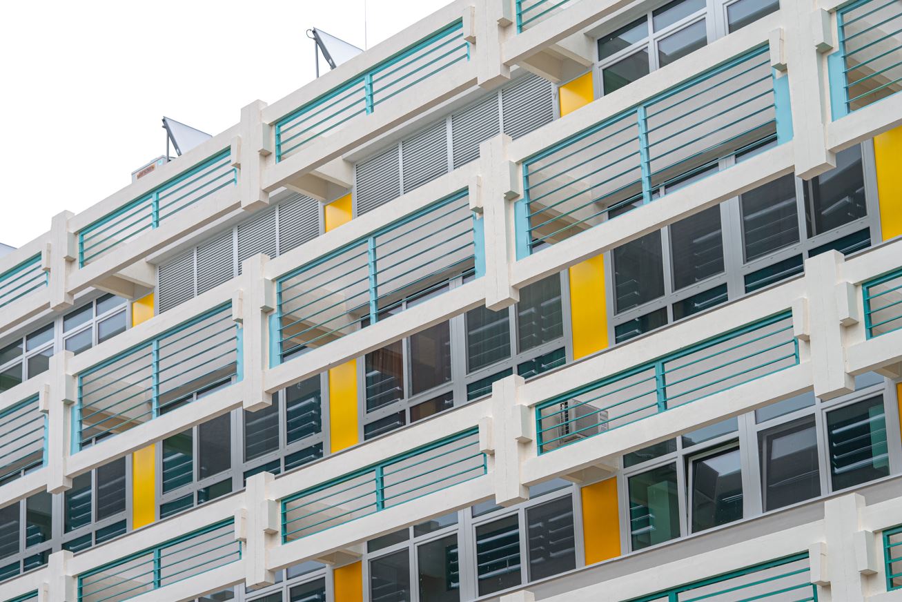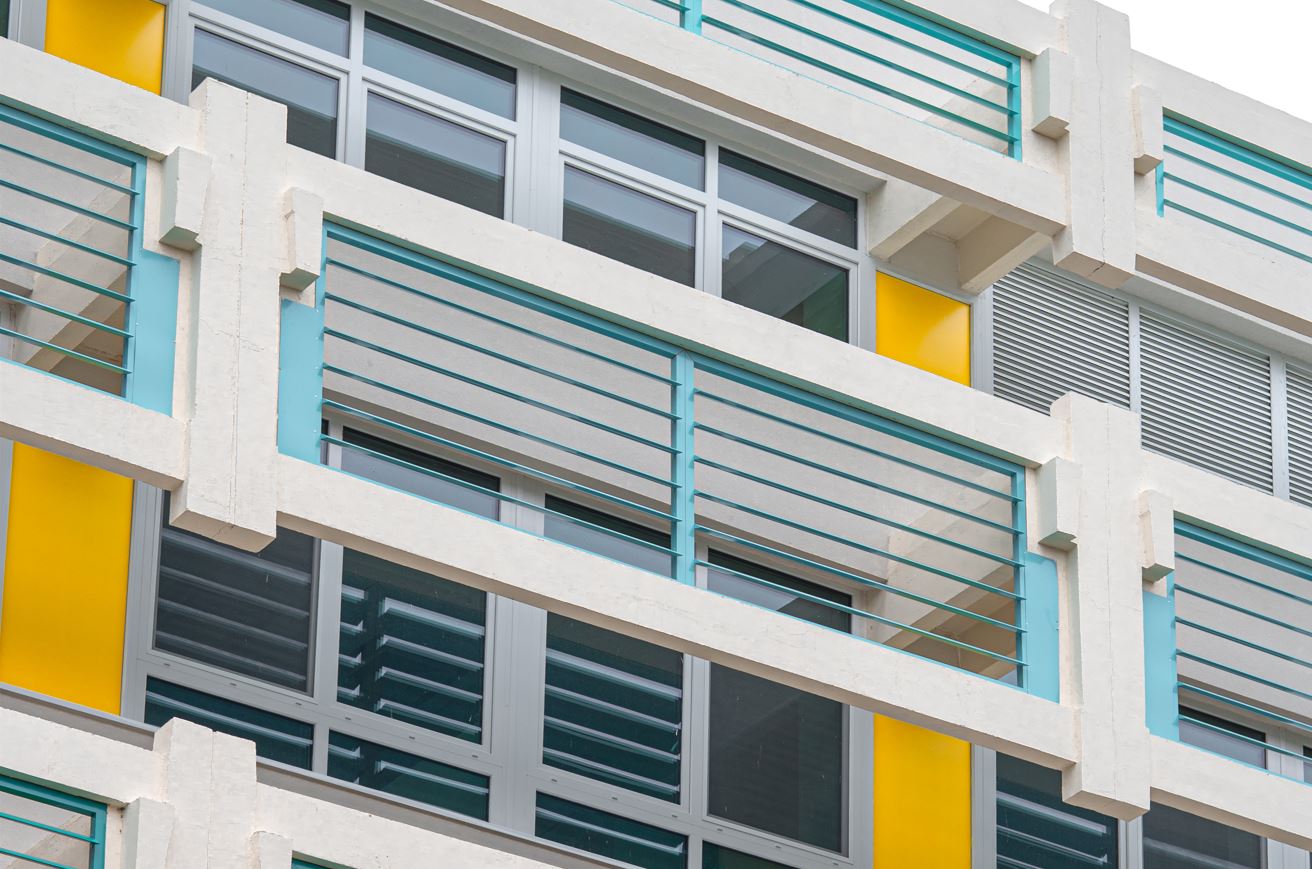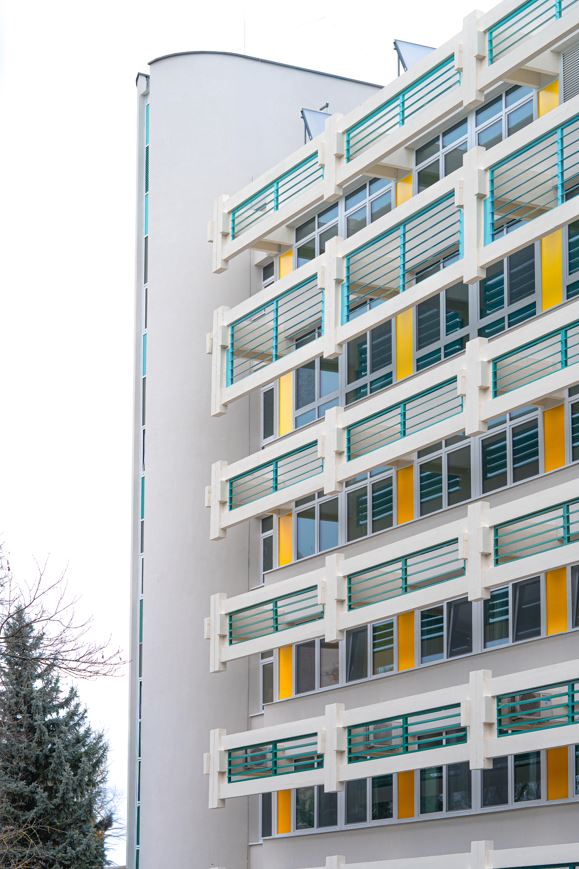 A vasbeton mellvédek és erkély lemezek felületének felújítása, korrózió védelme, ahol a betontakarás sérült, majd lefestése.